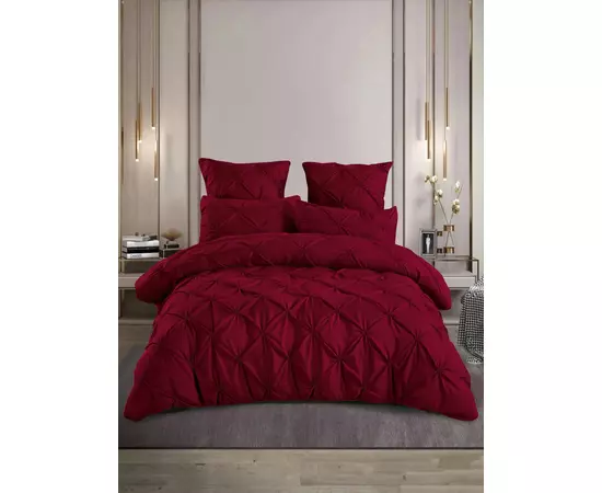 Lenjerie de Pat Finet, Pliuri Brodate, 6 Piese, Grena - FR245