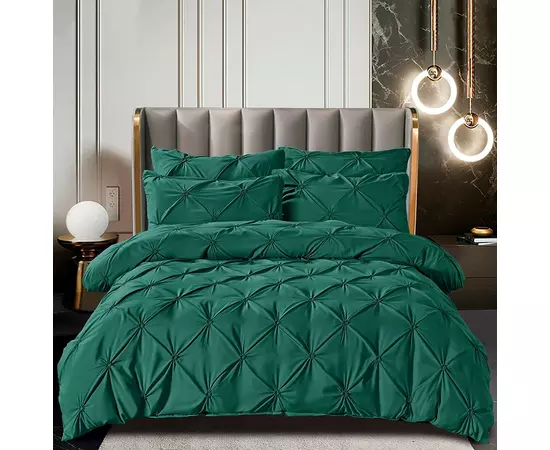 Lenjerie de Pat Finet, Pliuri Brodate, 6 Piese - JO567 Verde Smarald