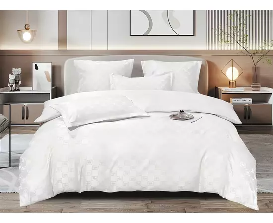 Lenjerie de Pat, Jacquard Satinat cu Elastic, pentru Pat Dublu, 6 Piese, Alb - ION84
