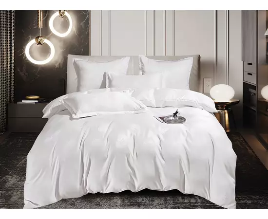 Lenjerie de Pat, Jacquard Satinat cu Elastic, pentru Pat Dublu, 6 Piese, Alb - ION88
