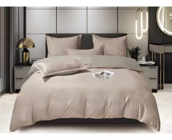 Lenjerie de Pat, Jacquard Satinat cu Elastic, pentru Pat Dublu, 6 Piese, Cappuccino - ION87