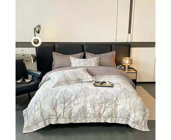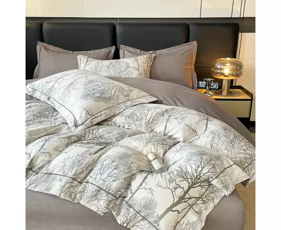 Lenjeria de pat are doua fete, pe o parte un imprimeu, pe cealalta imprimeu UNI, astfel ca poti de fiecare data sa schimbi decorul camerei.