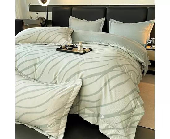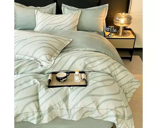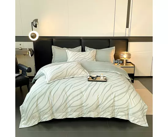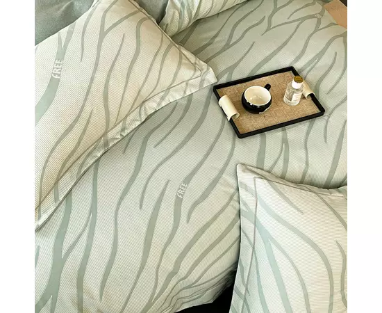 Lenjeria de pat are doua fete, pe o parte un imprimeu, pe cealalta imprimeu UNI, astfel ca poti de fiecare data sa schimbi decorul camerei.