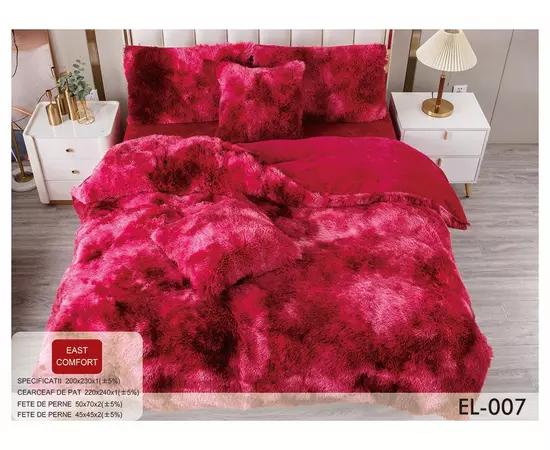 Lenjerie Fluffy Super Pufoasa 6 Piese, Visiniu Pestrit - EL007