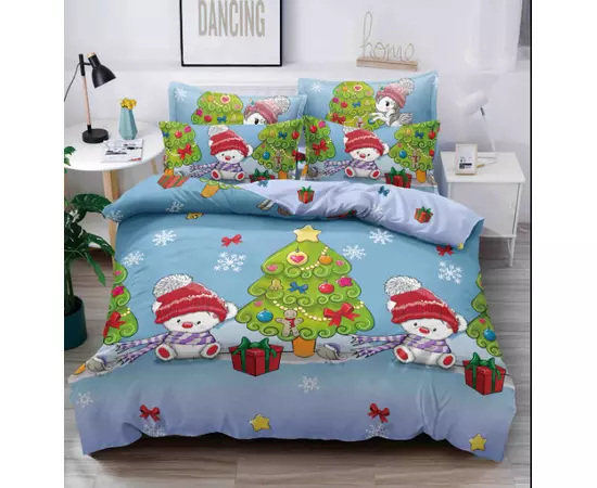Lenjerie de pat cu imprimeu modern de Craciun.