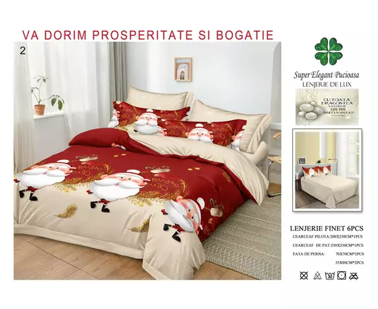 Lenjerie Pat cu 6 piese Bumbac Finet, Model de Craciun - PUC164