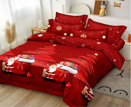 Lenjerie de pat cu imprimeu modern, cu Mos Craciun.