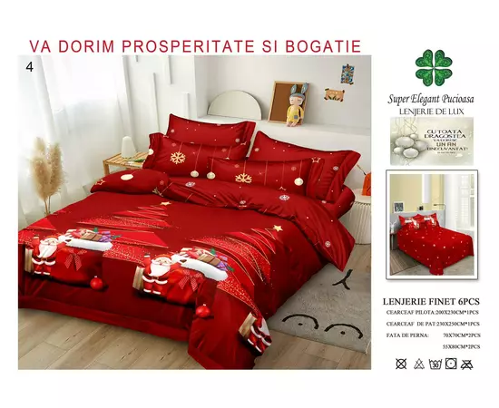 Lenjerie Pat cu 6 piese Bumbac Finet, Model de Craciun - PUC166