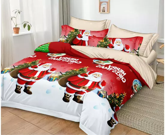 Lenjerie de pat cu imprimeu modern, cu Mos Craciun.