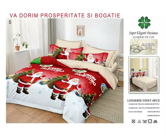Lenjerie Pat cu 6 piese Bumbac Finet, Model de Craciun - PUC167