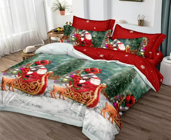 Lenjerie de pat cu imprimeu modern, cu Mos Craciun.