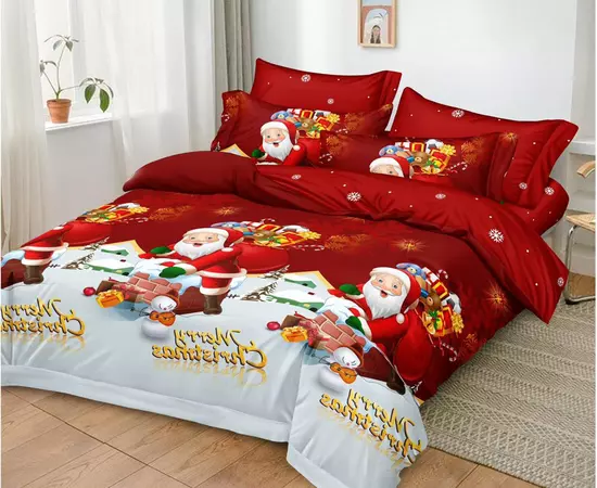 Lenjerie de pat cu imprimeu modern, cu Mos Craciun.