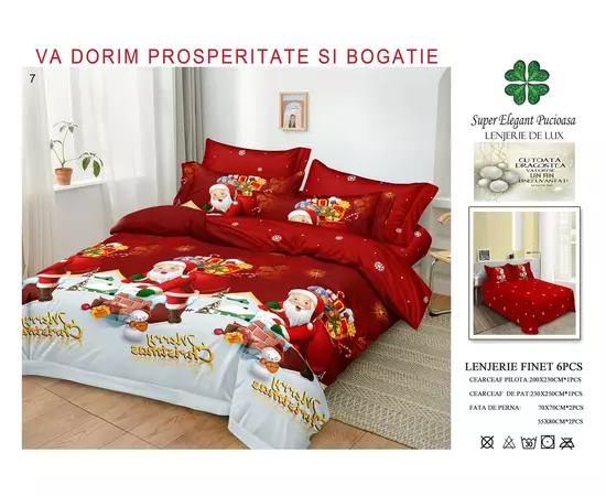 Lenjerie Pat cu 6 piese Bumbac Finet, Model de Craciun - PUC174