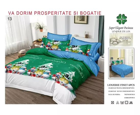 Lenjerie Pat cu 6 piese Bumbac Finet, Model de Craciun - PUC175