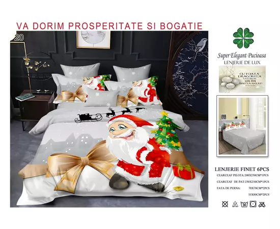 Lenjerie Pat cu 6 piese Bumbac Finet, Model de Craciun - PUC182