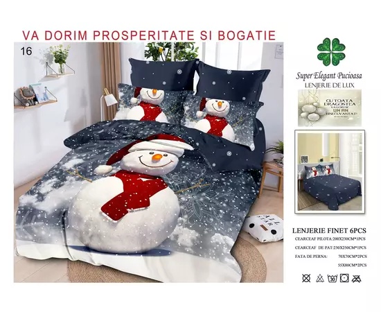 Lenjerie Pat cu 6 piese Bumbac Finet, Model de Craciun - PUC183