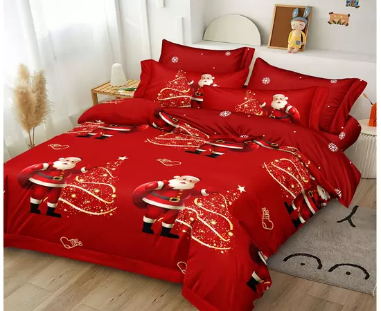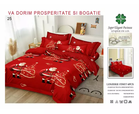 Lenjerie Pat cu 6 piese Bumbac Finet, Model de Craciun - PUC189