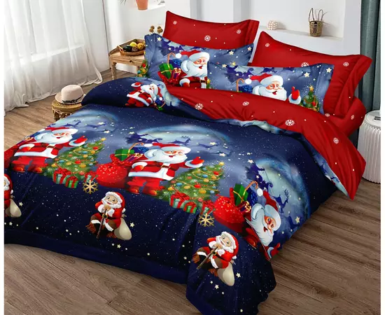 Lenjerie de pat cu imprimeu modern, cu Mos Craciun.