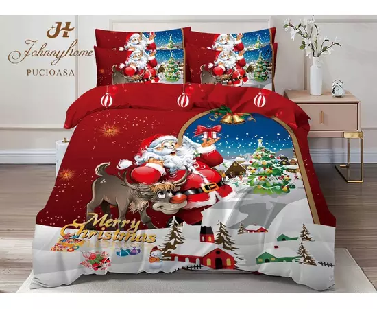 Lenjerie Pat cu 6 piese Bumbac Finet, Model de Craciun - SIPR-Q2-11