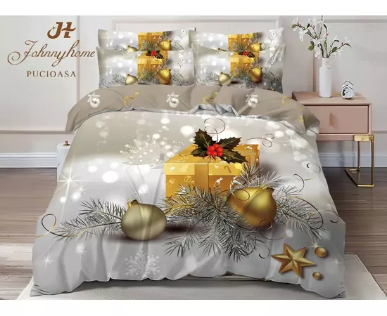 Lenjerie Pat cu 6 piese Bumbac Finet, Model de Craciun - SIPR-Q2-12