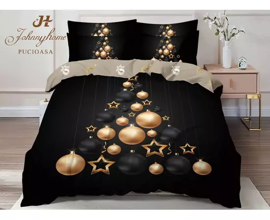 Lenjerie Pat cu 6 piese Bumbac Finet, Model de Craciun - SIPR-Q2-13