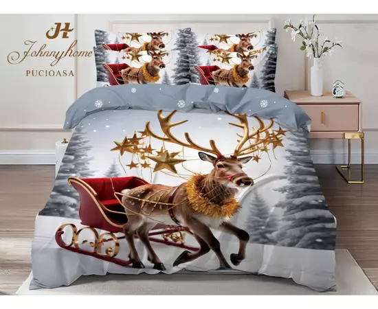 Lenjerie Pat cu 6 piese Bumbac Finet, Model de Craciun - SIPR-Q2-19