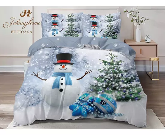 Lenjerie Pat cu 6 piese Bumbac Finet, Model de Craciun - SIPR-Q2-20
