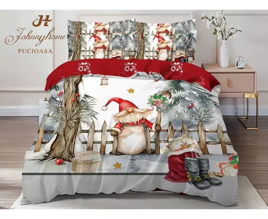 Lenjerie Pat cu 6 piese Bumbac Finet, Model de Craciun - SIPR-Q2-27