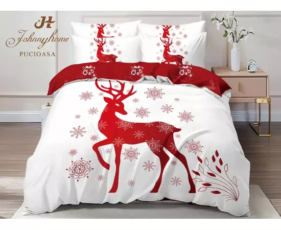 Lenjerie Pat cu 6 piese Bumbac Finet, Model de Craciun - SIPR-Q2-29
