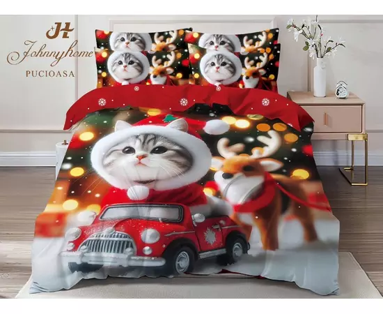 Lenjerie Pat cu 6 piese Bumbac Finet, Model de Craciun - SIPR-Q2-33