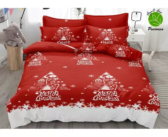 Lenjerie Pat cu 6 piese Bumbac Finet, Model de Craciun - SIPRTQ60-28