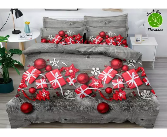 Lenjerie Pat cu 6 piese Bumbac Finet, Model de Craciun - SIPRTQ60-30