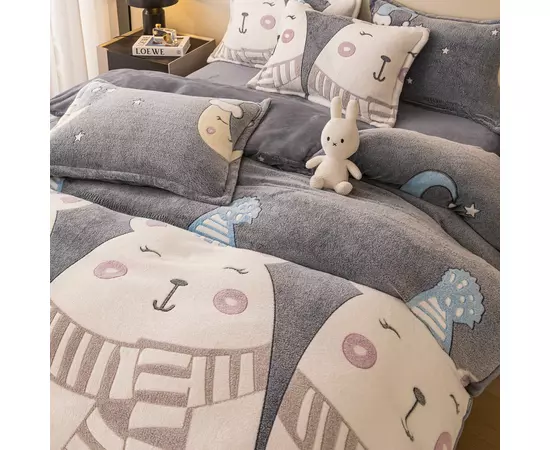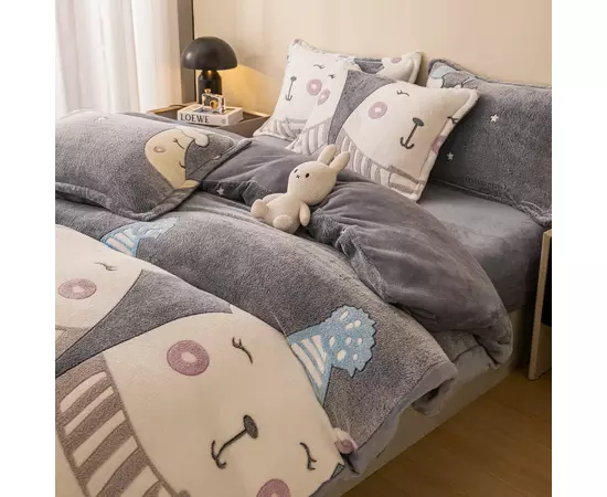 - *Confort și Delicatețe*: Materiale pufoase și moi, ideale pentru pielea sensibilă a copiilor, asigură un somn odihnitor.