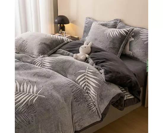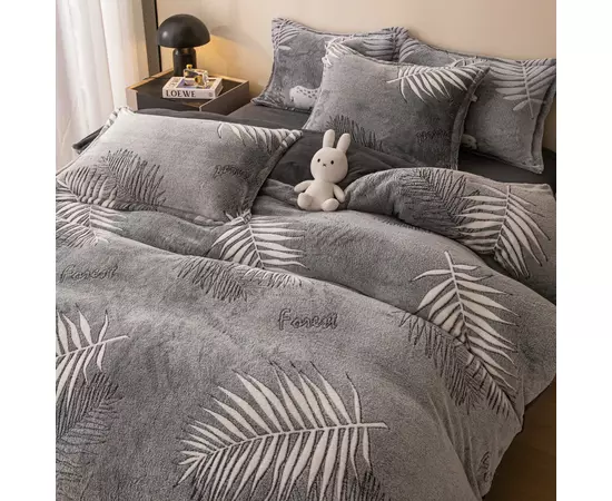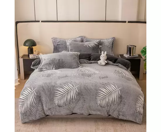 Lenjerie Pufoasa Cocolino Pentru Pat de 1 Persoana - JO321 Frunze Gri