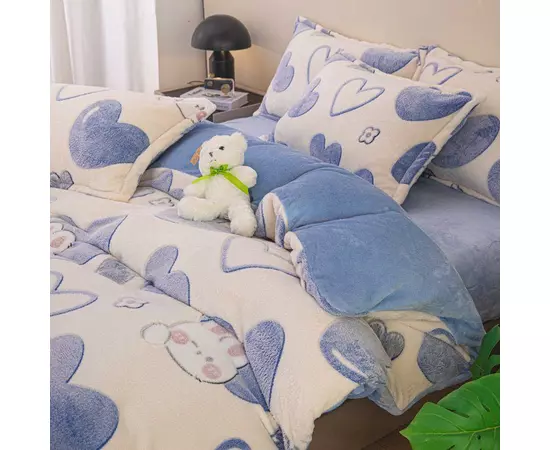 - *Confort și Delicatețe*: Materiale pufoase și moi, ideale pentru pielea sensibilă a copiilor, asigură un somn odihnitor.