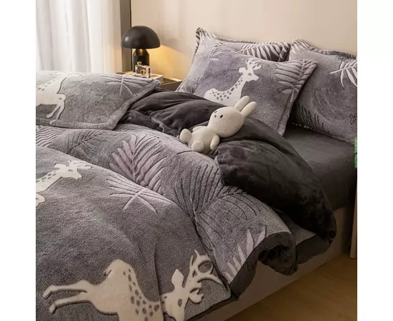 - *Confort și Delicatețe*: Materiale pufoase și moi, ideale pentru pielea sensibilă a copiilor, asigură un somn odihnitor.