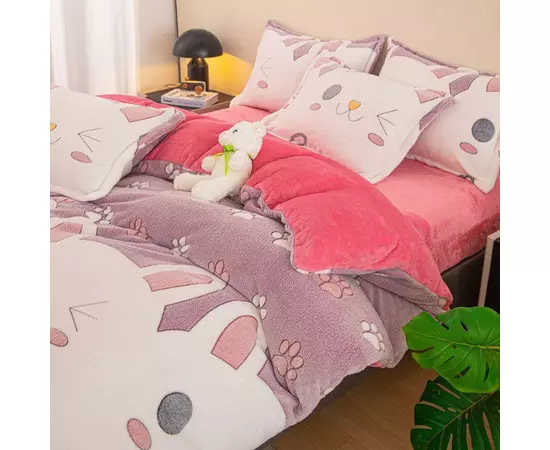 - *Confort și Delicatețe*: Materiale pufoase și moi, ideale pentru pielea sensibilă a copiilor, asigură un somn odihnitor.
