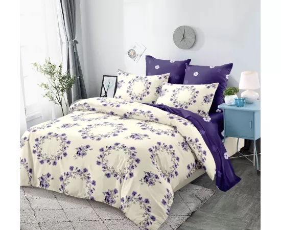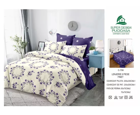 Lenjerie de Pat pentru 2 persoane cu 6 piese confectionata din Bumbac Finet.