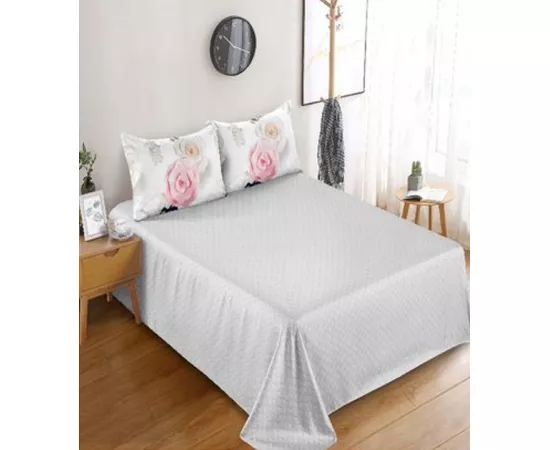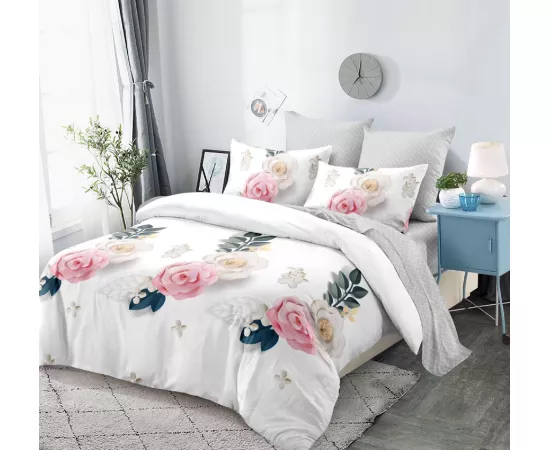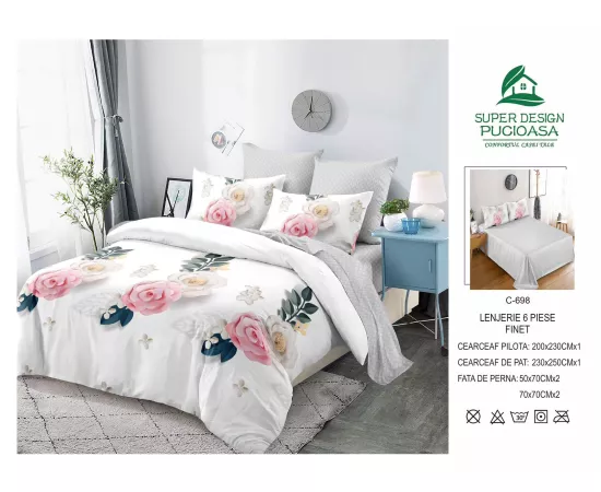 Lenjerie de Pat pentru 2 persoane cu 6 piese confectionata din Bumbac Finet.