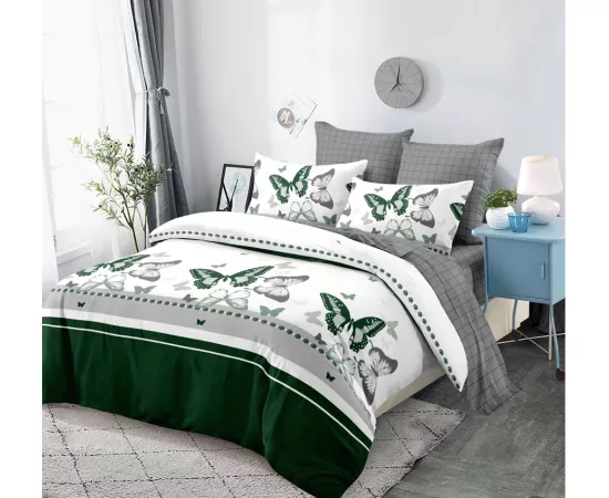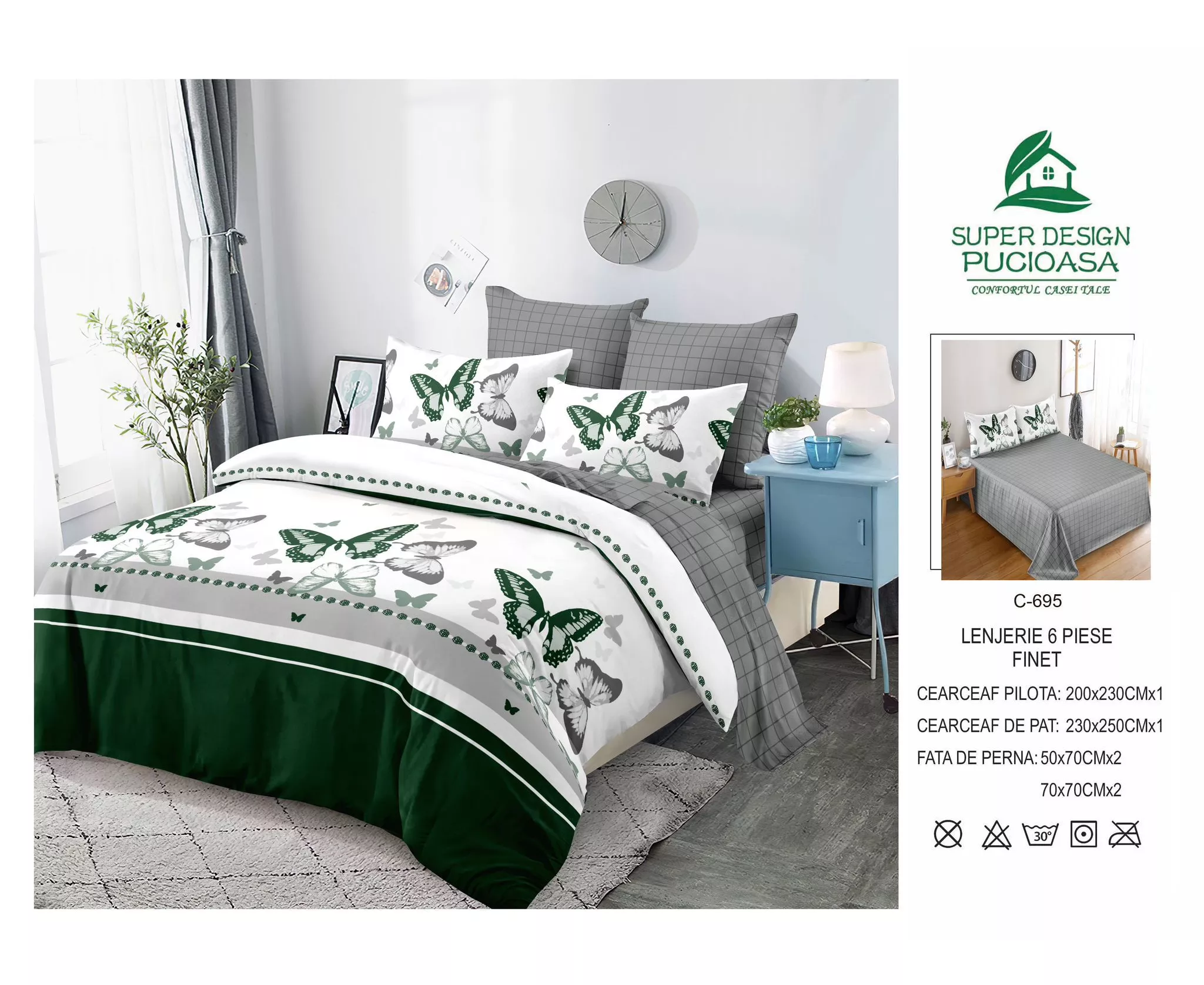 Lenjerie de Pat pentru 2 persoane cu 6 piese confectionata din Bumbac Finet.