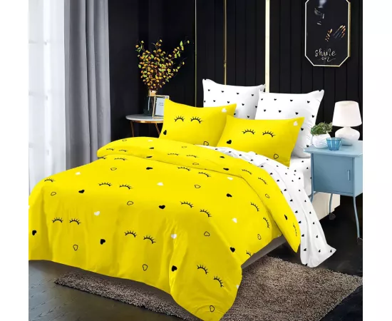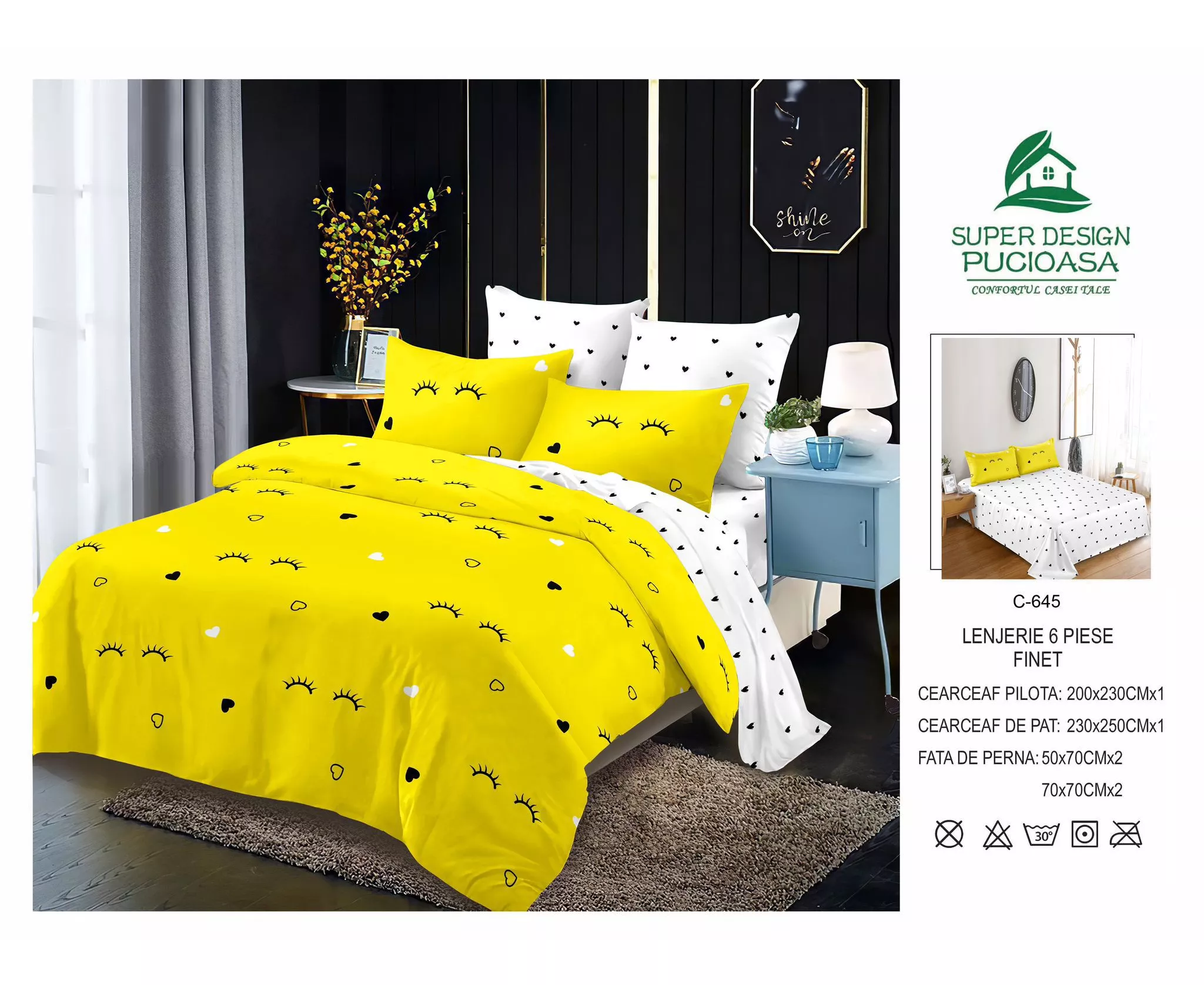 Lenjerie de Pat pentru 2 persoane cu 6 piese confectionata din Bumbac Finet.