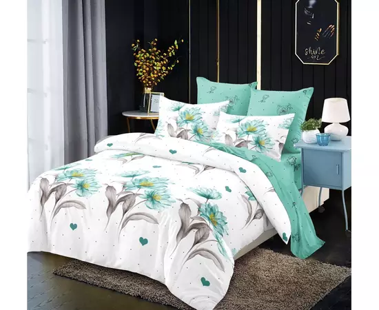 Lenjerie de Pat pentru 2 persoane cu 6 piese confectionata din Bumbac Finet.