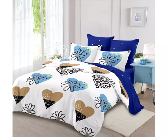 Lenjerie de Pat pentru 2 persoane cu 6 piese confectionata din Bumbac Finet.