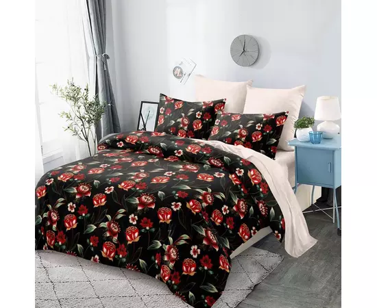 Este moale, ceea ce aduce o nota de confort. Cu toate acestea este si un material dur, asa ca in timp nu se deterioreaza atat de usor si pastreaza rezistenta si la culorile, design-ul unei lenjerii. Lenjeriile de pat dublu cu imprimeu sunt realizate folosind reactivi astfel ca nu vor iesi culorile la spalare. Materialul este bumbac finet-satinat cu o greutate de 215 gr / mp.
