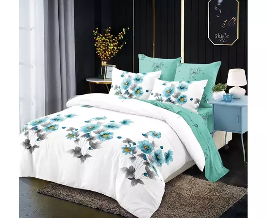 Lenjerie de Pat pentru 2 persoane cu 6 piese confectionata din Bumbac Finet.