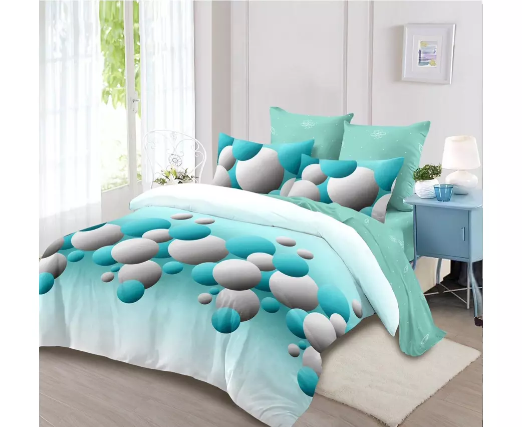 Lenjerie de Pat pentru 2 persoane cu 6 piese confectionata din Bumbac Finet.