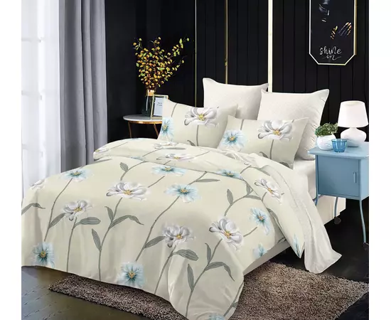 Lenjerie de Pat pentru 2 persoane cu 6 piese confectionata din Bumbac Finet.