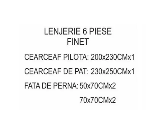 Lenjerie de Pat pentru 2 persoane cu 6 piese confectionata din Bumbac Finet.