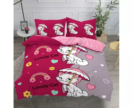 Este moale, ceea ce aduce o nota de confort. Cu toate acestea este si un material dur, asa ca in timp nu se deterioreaza atat de usor si pastreaza rezistenta si la culorile, design-ul unei lenjerii. Lenjeriile de pat dublu cu imprimeu sunt realizate folosind reactivi astfel ca nu vor iesi culorile la spalare. Materialul este bumbac finet-satinat cu o greutate de 215 gr / mp.