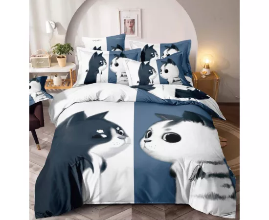 Lenjerie de Pat pentru 2 persoane cu 6 piese confectionata din Bumbac Finet 3D.